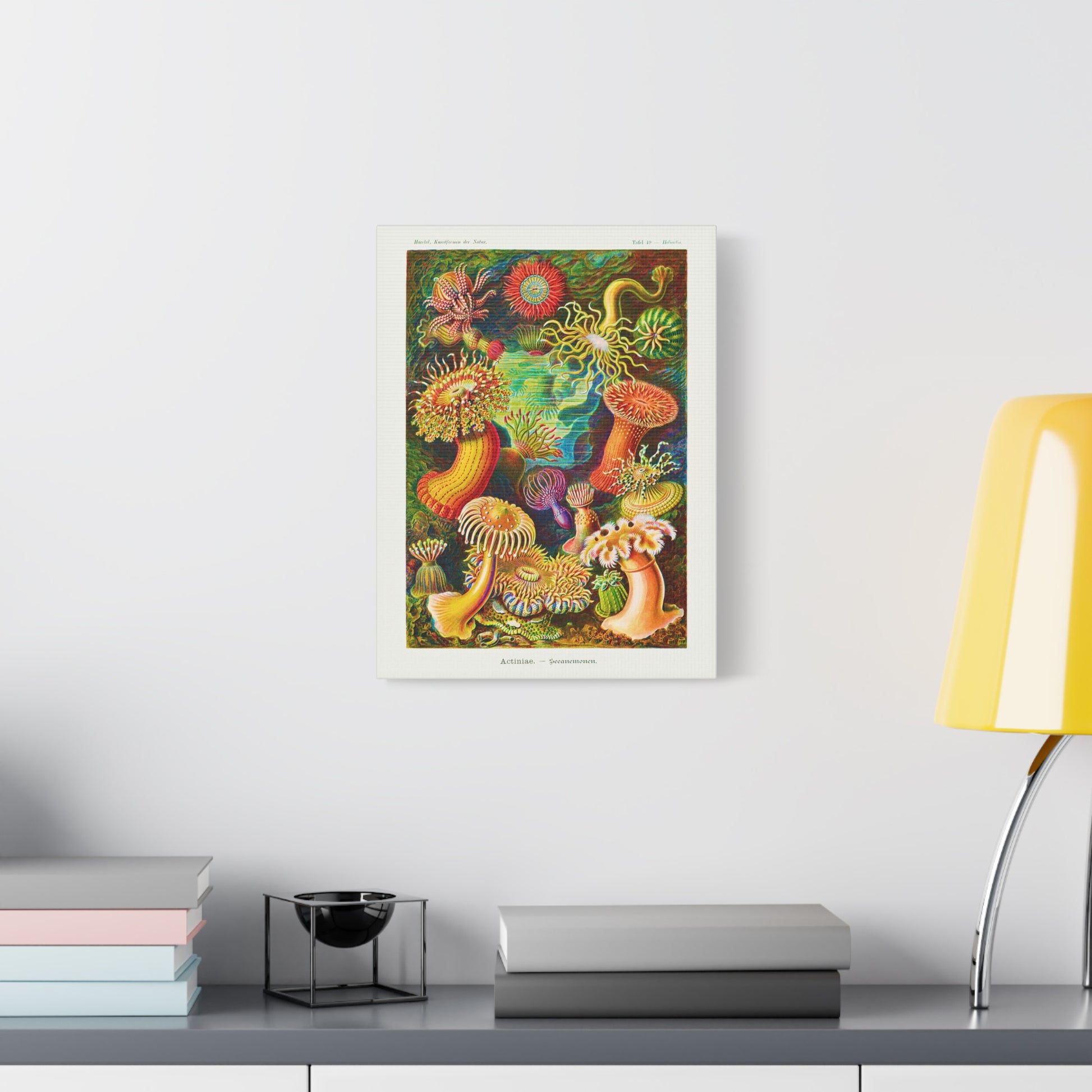 "Tafel 49" or Table 49 highlights the Actiniae order, more commonly known here as sea anemone. This is a page taken straight from "Kunstformen der Natur" or Art Forms in Nature published between 1899 and 1904 by German zoologist, naturalist, marine biologist, and artist Ernst Haeckel.