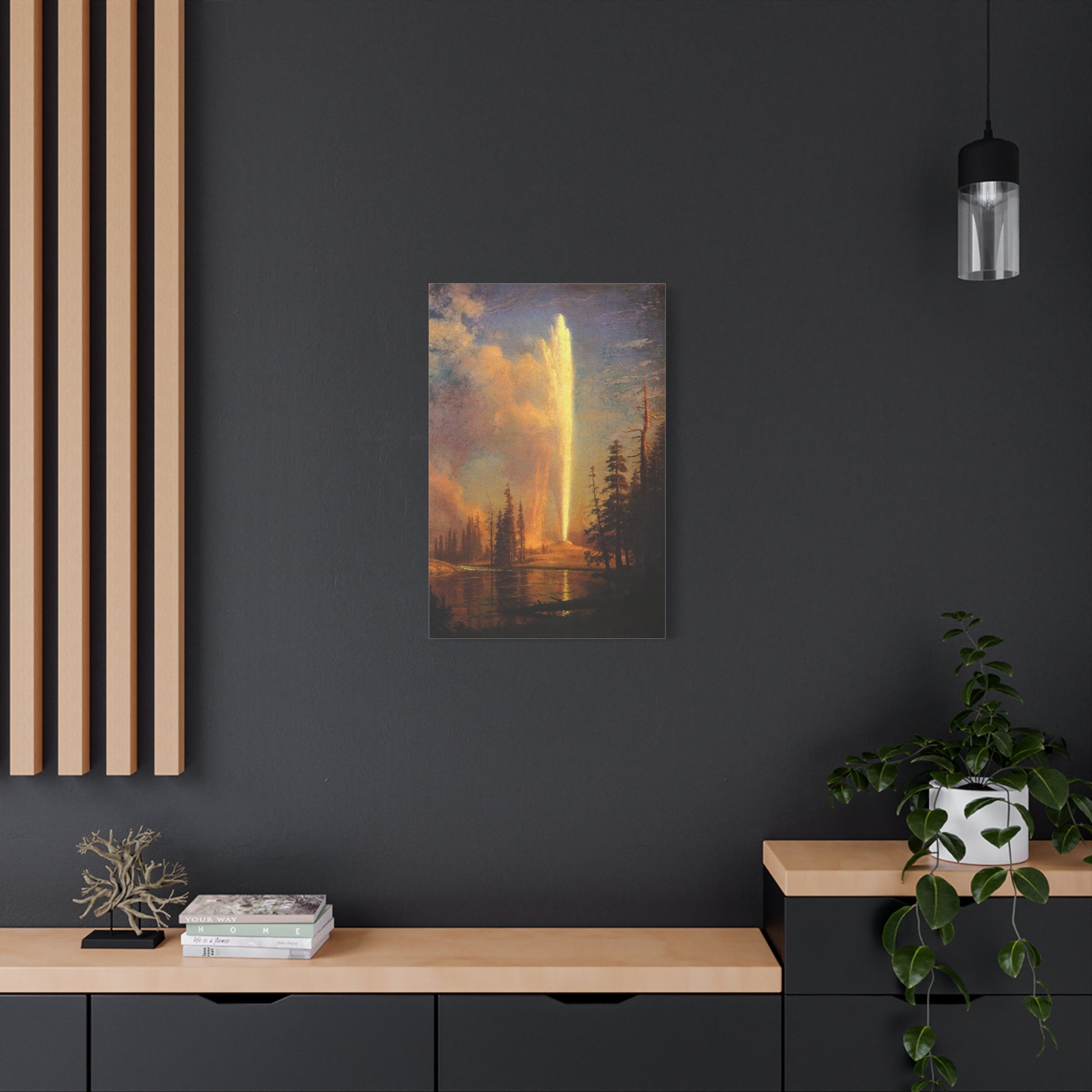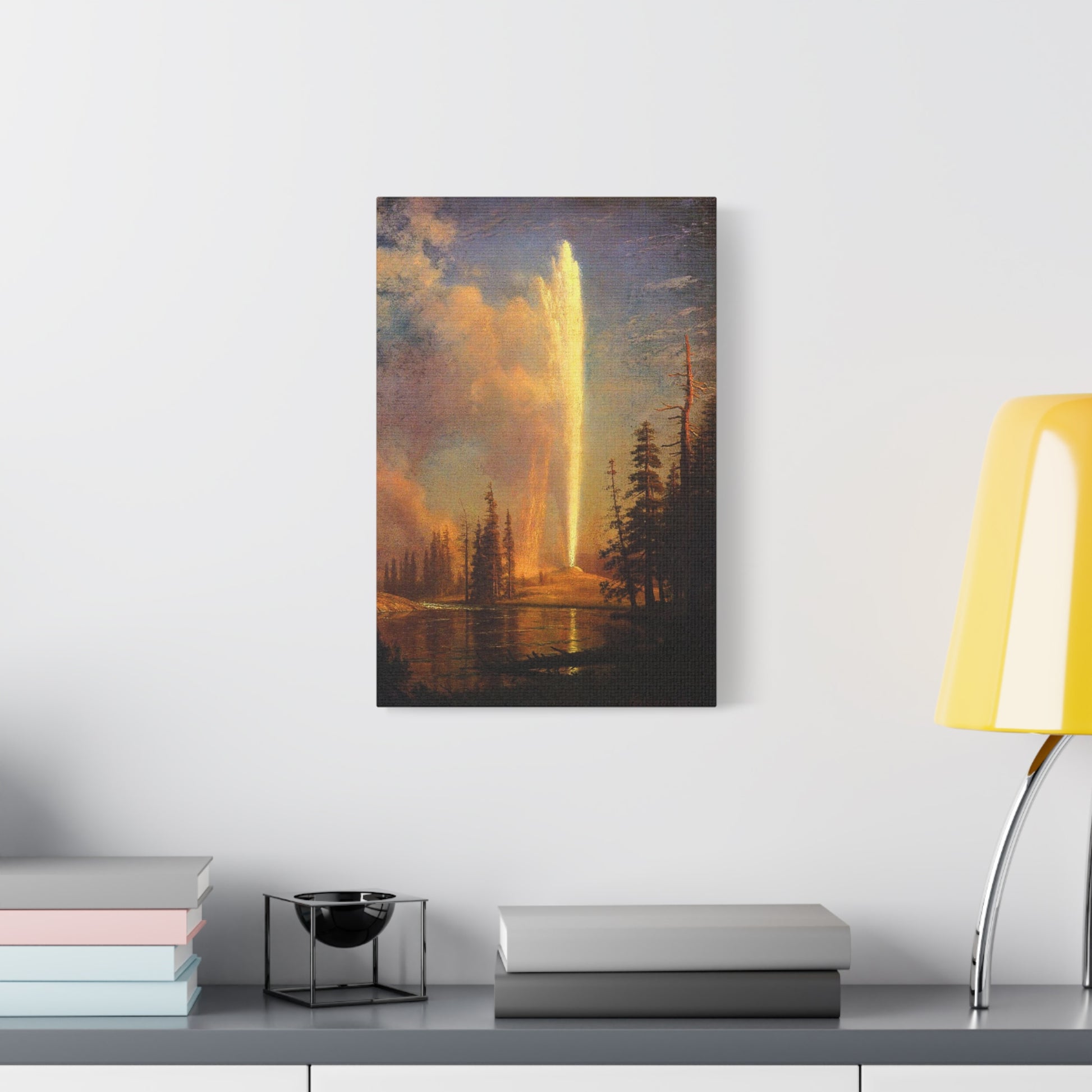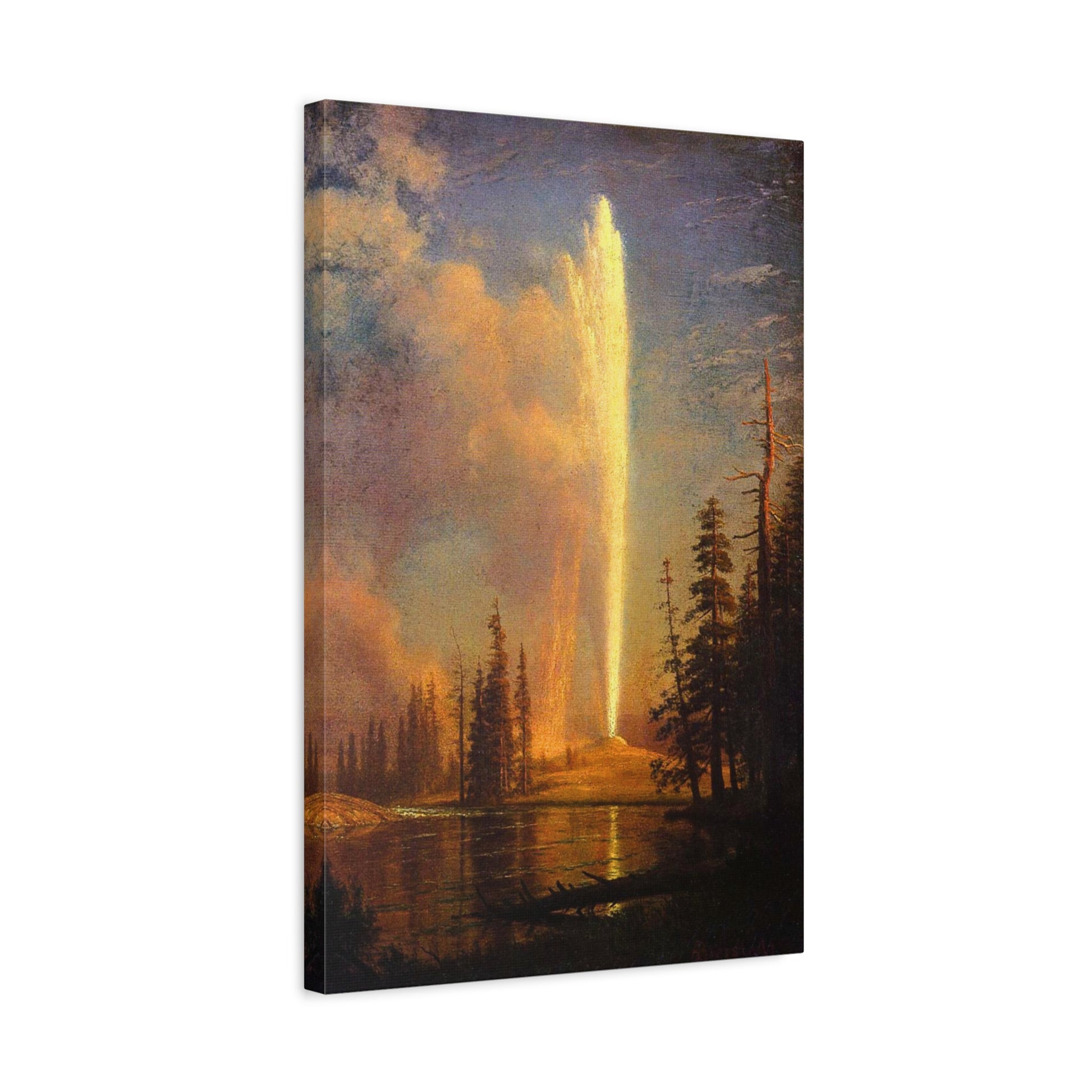 Old Faithful in Yellowstone National Park must have left quite the impression on Albert Bierstadt, this is one of a few works that he painted depicting the preeminent geothermal feature. Completed in the 1880s, this work gives a depiction of Old Faithful at the golden hour during dawn or dusk looking from the banks of the nearby Firehole River.