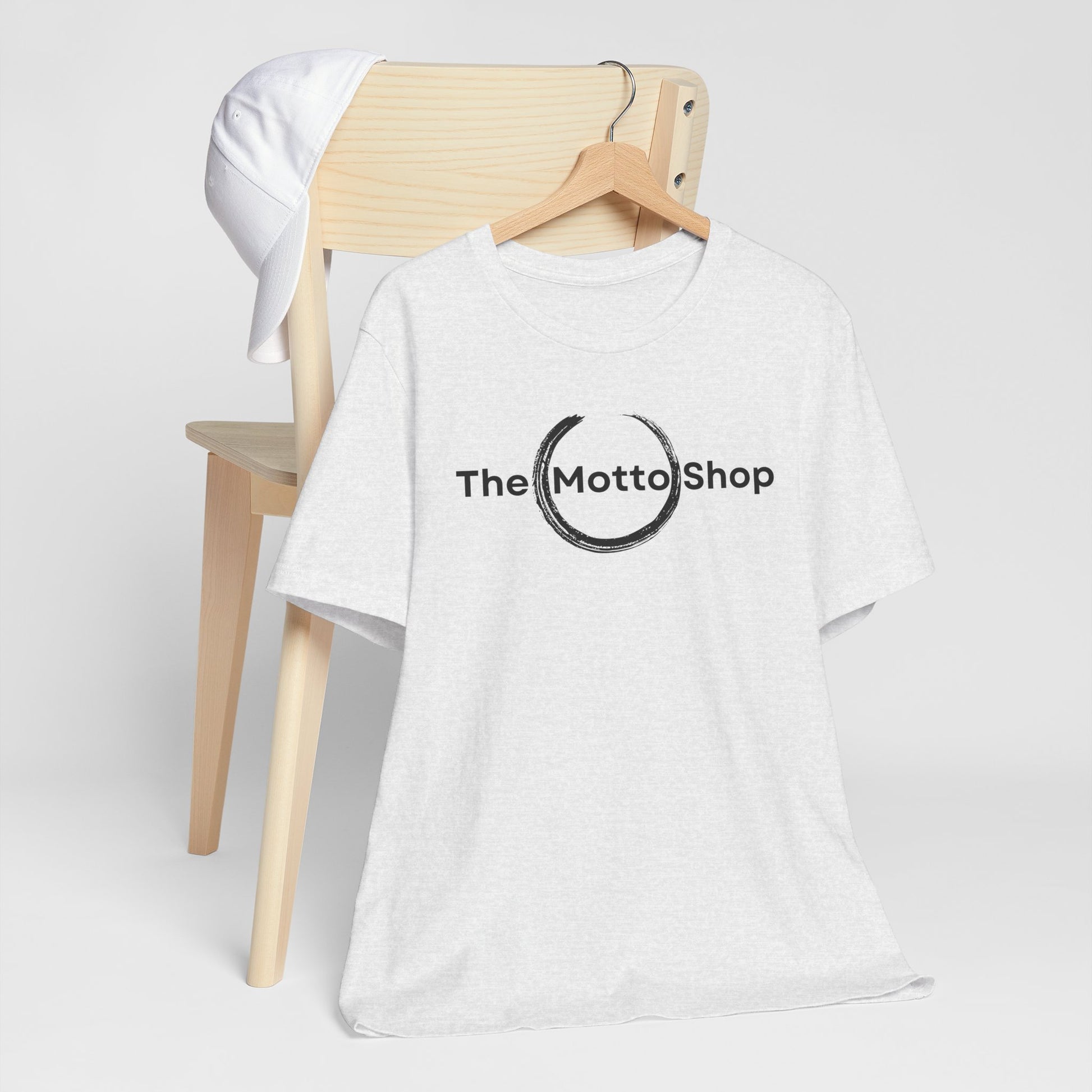 This shirt feels like a well-loved favorite. It's a classic unisex short sleeve tee sporting our logo. Thanks for supporting The Motto Shop!